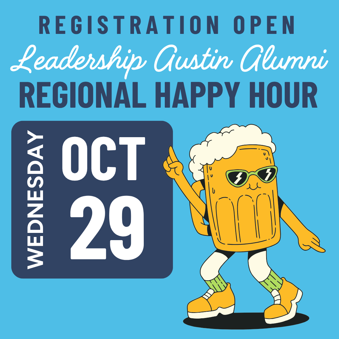 Take time out of your busy schedule to meet up with alumni in your neighborhood! Leadership Austin is planning fun, come-and-go happy hours. Come for a little, stay for a while. Meet Essential and Emerge alumni, as well as affiliate members, at these alumni-hosted gatherings. Drinks are optional—connection is the point! Please remember when registering...